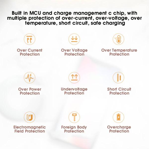 - Built-in MCU and charge management IC chip, with multiple protections such as overcurrent, overvoltage, overtemperature, short circuit, etc.